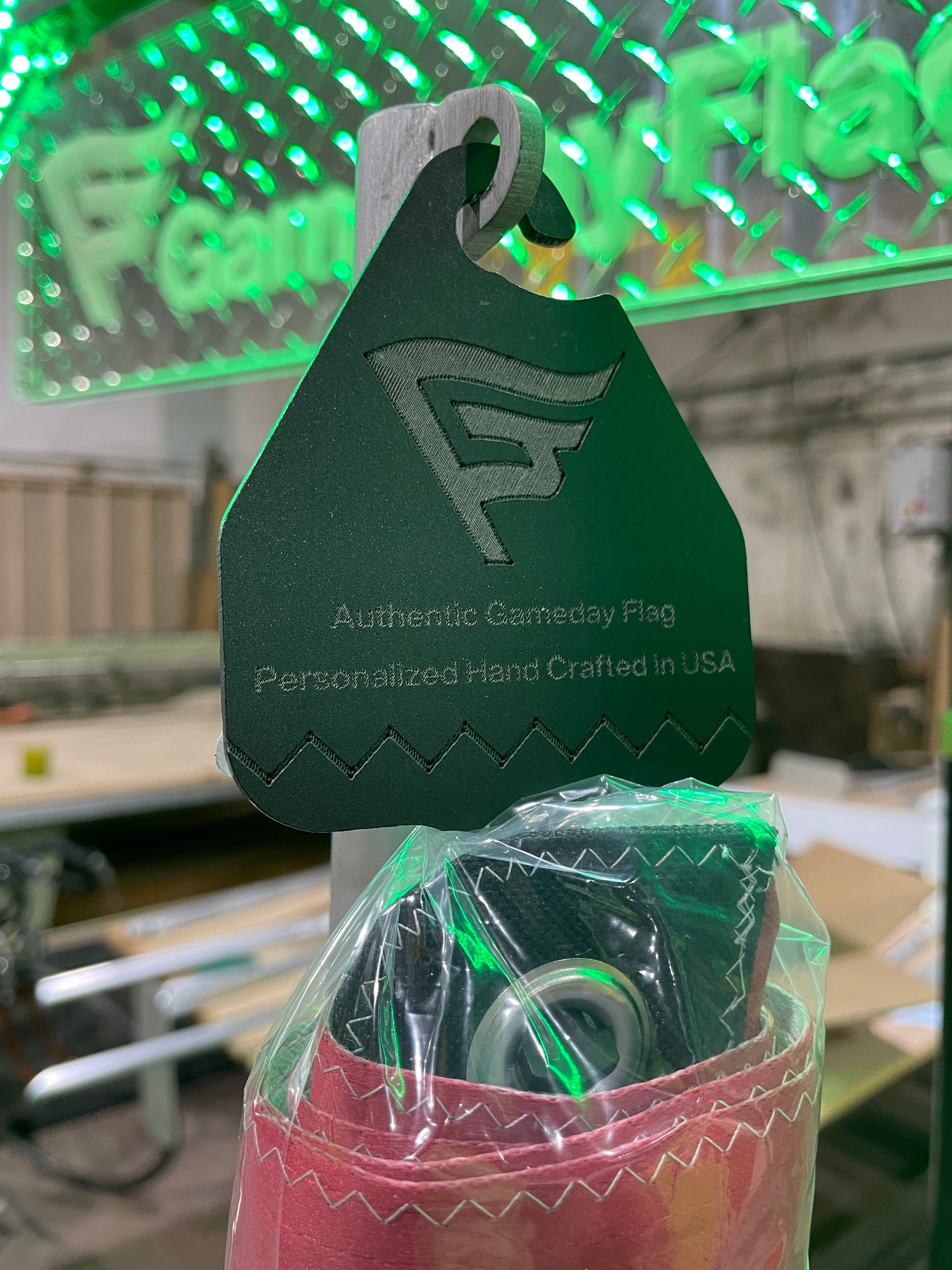 Authentic Gameday Flag Reinforcement Sewing is a typical detail that can be applied to any flag. It was developed with the sole purpose of reinforcing the luxurious Authentic Gameday Flags to sustain higher winds and last considerably longer.